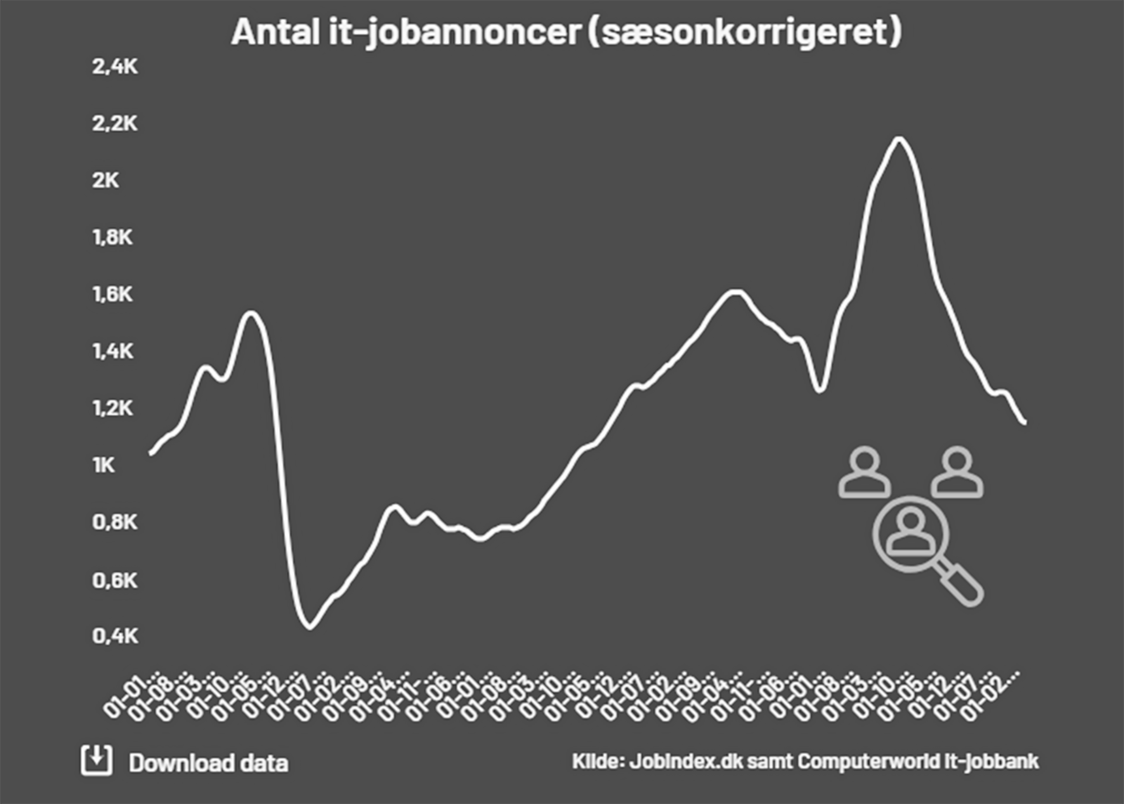 Ingen andre brancher i Danmark har oplevet et så markant fald i jobannoncer som it-branchen. Se hvor meget lønnen stadig vokser trods nedgangen i jobannoncer.